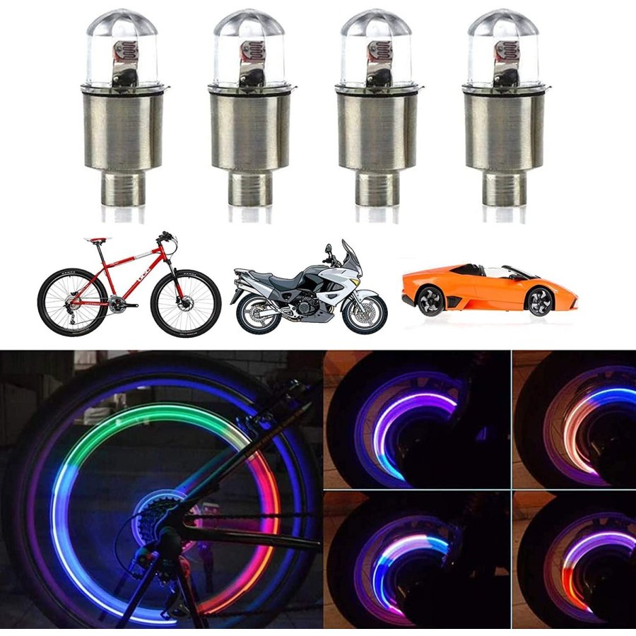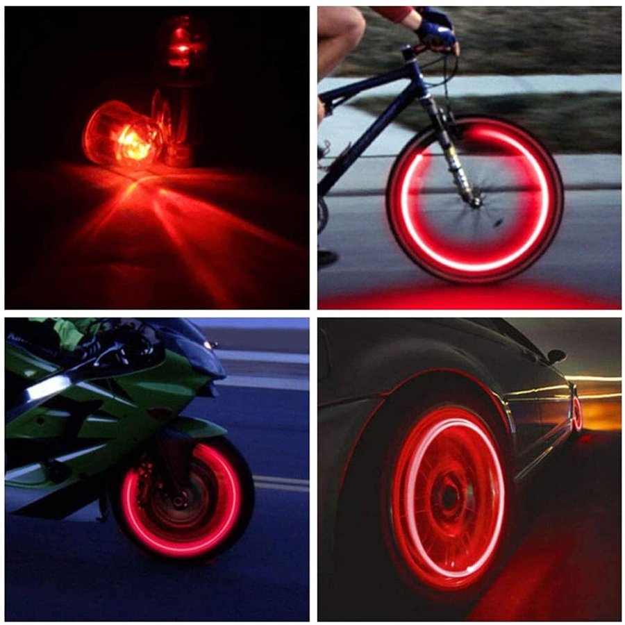 Luz LED para rueda de bicicleta – Tapón de válvula de neumático de coche para rueda de bicicleta con luz LED de flash