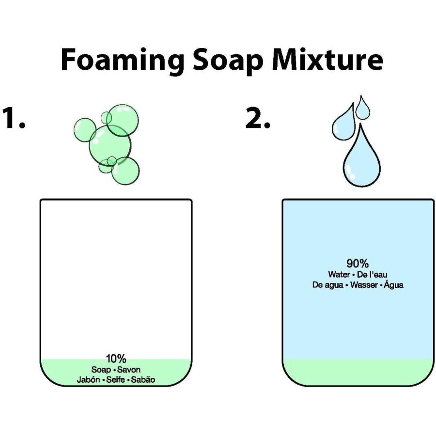 - Se recomienda usar un desinfectante de manos tipo espuma para un uso fácil y un buen efecto de espuma. Desinfectante de manos ordinario sin espuma, remojar en agua, revolver con agua, revolver uniformemente con un palito pequeño, no agitar