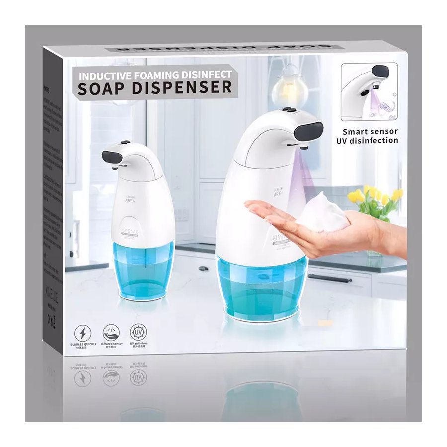 - En tiempos de la crisis sanitaria generada por el COVID-19, el dispensador de jabón de espuma automático es tu mejor aliado, su dispositivo sensor de infrarrojos inteligente permite evitar el contacto con las manos y prevenir infecciones. En solo 0.25 segundos de tiempo de detección hace salir el líquido.
