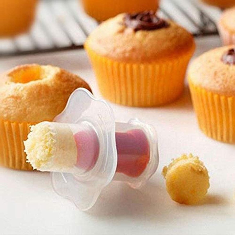 - El émbolo para cupcakes ahorra tiempo de trabajo fácil y rápidamente y crea un núcleo al agregar su comida favorita (como salsa, azúcar o crema)