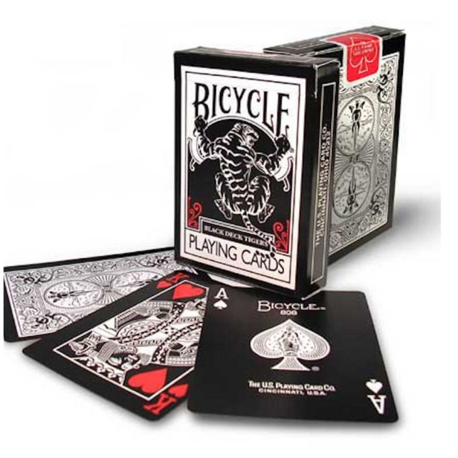 - Tiger Black: esta baraja es muy comercial. Cartas en negativo, color blanco y negro. Muy bonita estéticamente a la hora de hacer abanicos o cintas.