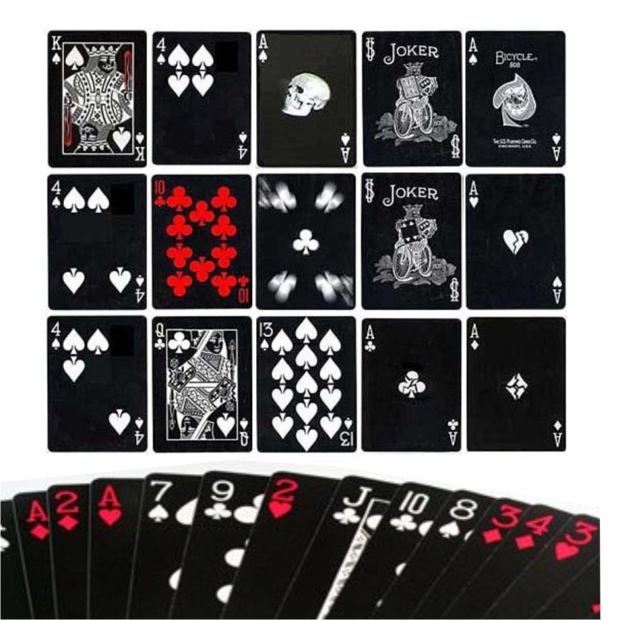 - Karnival Midnight: La edición en negro de la Bicycle Karnival, con cierta variación de diseño y nuevas características, hacen de esta baraja toda una pieza de colección. Calidad Bicycle.
