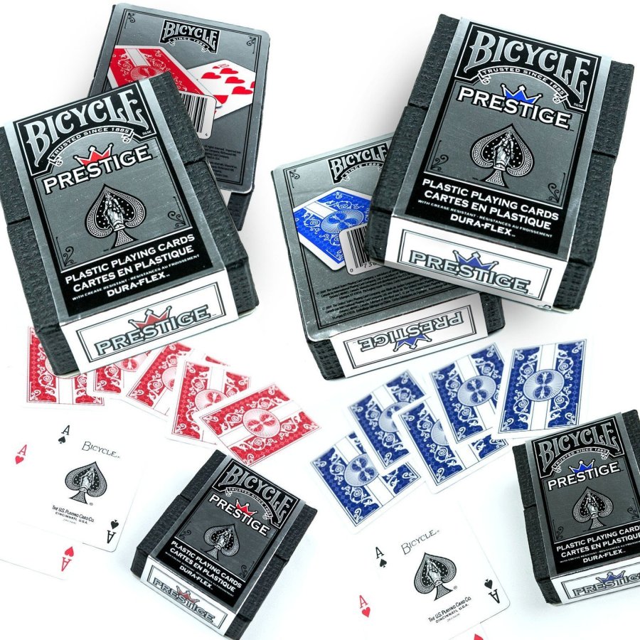 - Contenido: Una Baraja de Cartas Prestige Plastic Playing Cards DURAFLEX