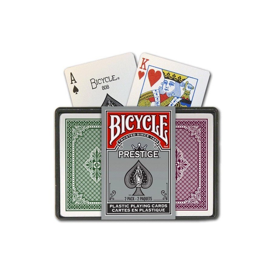 Many professionals prefer the flexibility and durability of plastic cards. Bicycle Prestige are unmatched in durability and are the only 100% plastic cards to offer a paper-like feel.