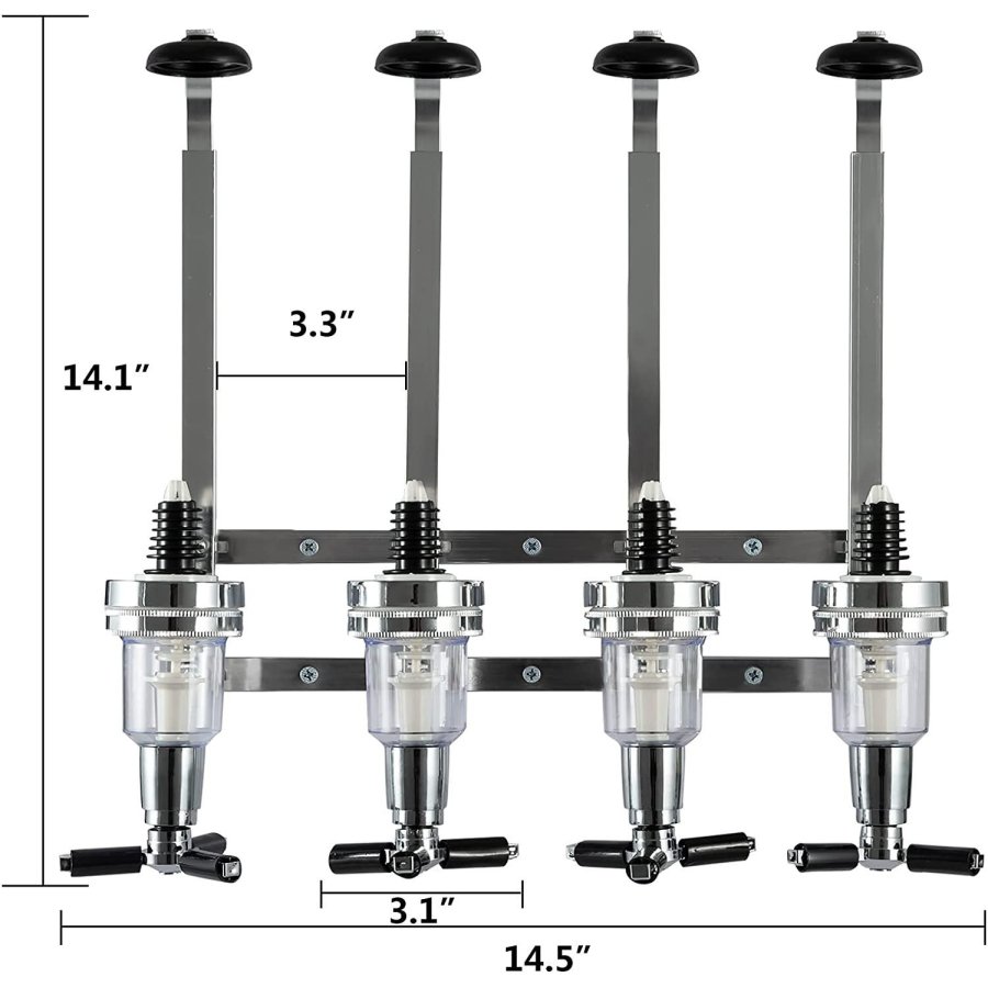 - Gran dispensador de licor: el dispensador de alcohol de 4 botellas le permite dispensar fácilmente 3 tipos diferentes de licor con una válvula, medirlos y mezclarlos, y la válvula puede evitar desperdicios o derrames.