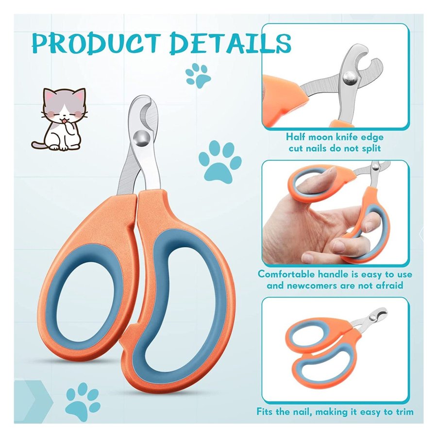 • Material de calidad: los cortaúñas para gatos están hechos de acero inoxidable, plástico y goma, las cuchillas son puntiagudas y pueden cortar efectivamente las uñas de las mascotas, las manijas son suaves y cómodas, seguras y confiables.