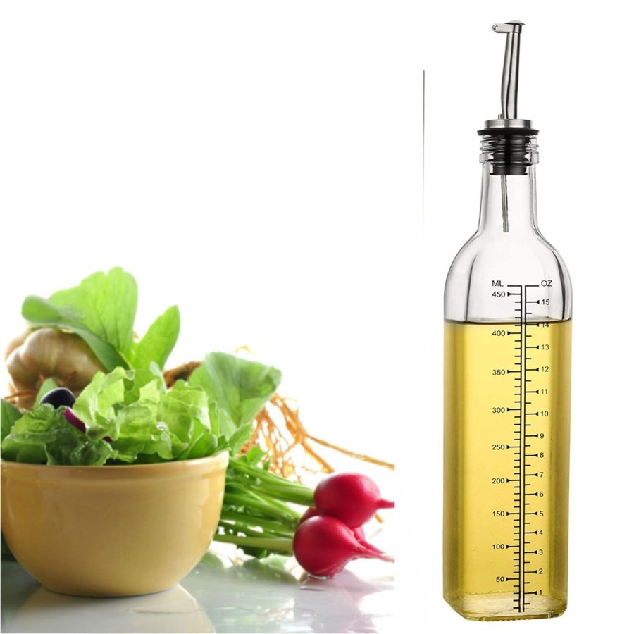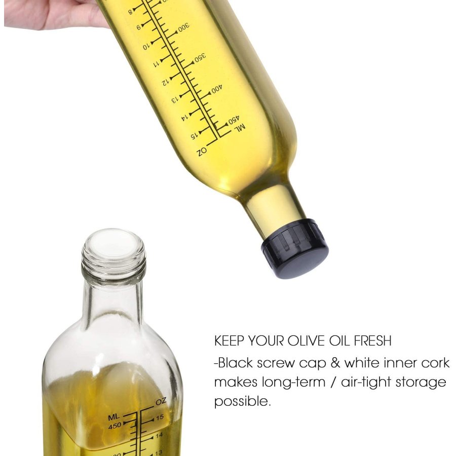 - DISPENSADOR PRÁCTICO: boquilla única antigoteo para fugas de aceite con una escala transparente en OZ y ML, control preciso de aceite o vinagre para verter. ¡Mejor para su billetera y su salud!
