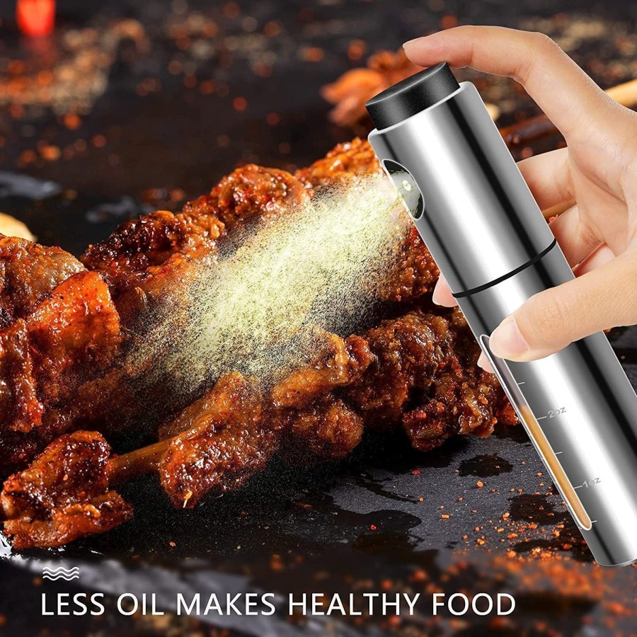 - Uso universal: El rociador se puede usar para cocinar alimentos deliciosos y saludables, rociar aceite en lugar de verter, menos calorías, son excelentes para rociar ensaladas, palomitas de maíz y cualquier otra cosa que desee rociar.