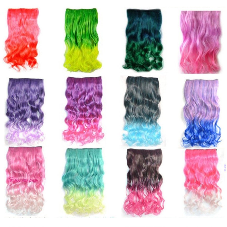 - Cabello Ondulado Bicolor de 24 cm de ancho con 5 clips