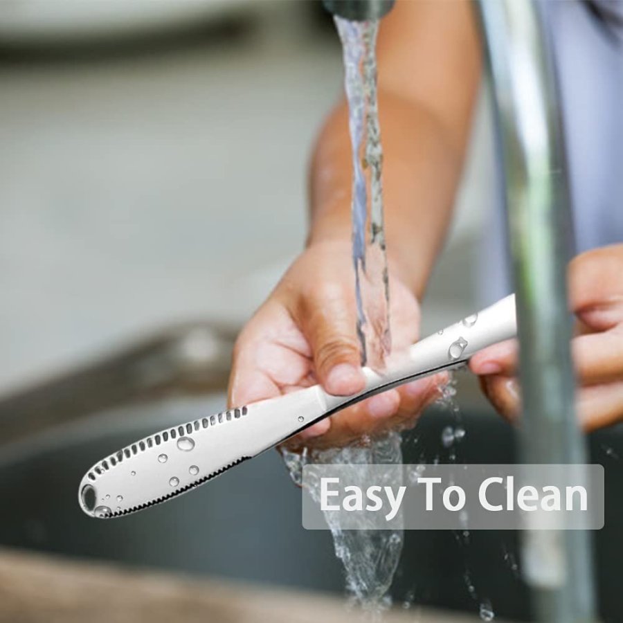 • DISEÑO: Hemos diseñado esta hermosa herramienta de cocina para que se use como untador de mantequilla y un cuchillo rizador de mantequilla. El hermoso diseño, el equilibrio de peso perfecto y la hoja de 1 pulgada lo hacen perfecto para untar la cantidad correcta de mantequilla/mermeladas/cremas en su tostada.