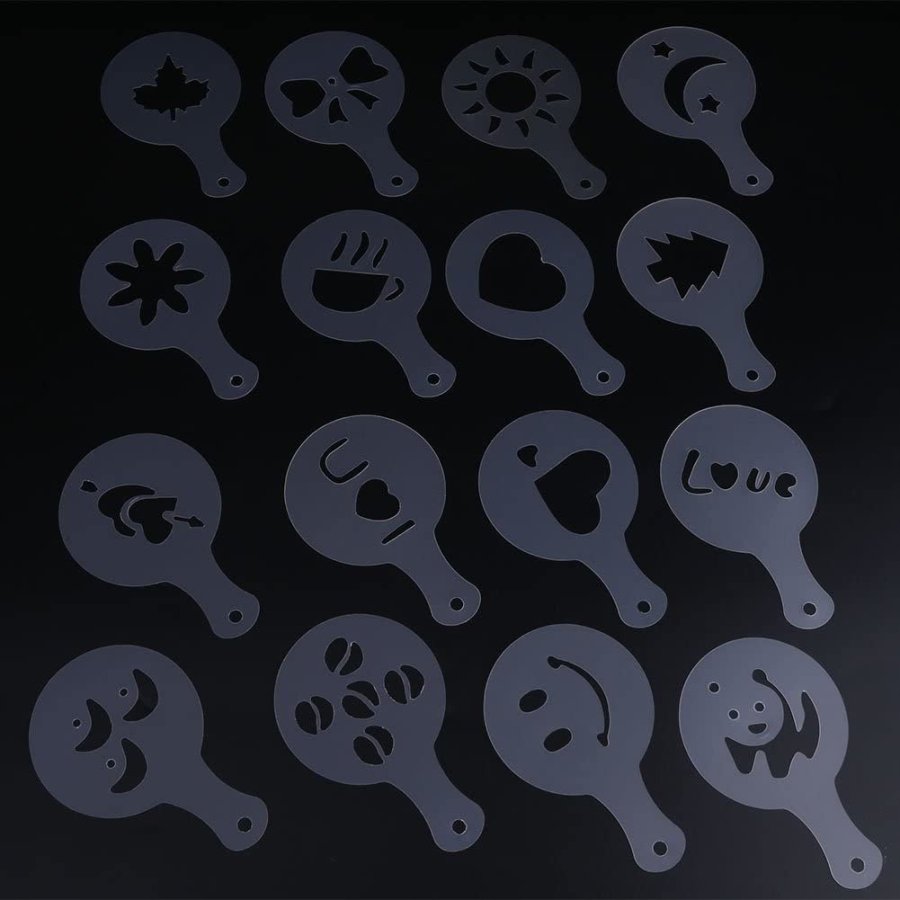 • Incluye 16 tipos diferentes de patrones lindos, hace que su café se vea más divertido y atractivo.