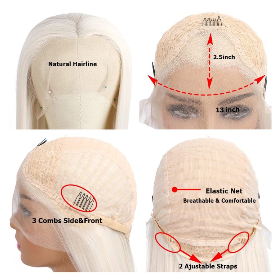 • Esta Peluca no está diseñada para el teñido debido a que no hay escamas de cabello para mantener el color durante mucho tiempo y los enjuagues con crema para el cabello no se pueden lavar dentro del casquillo de la peluca.