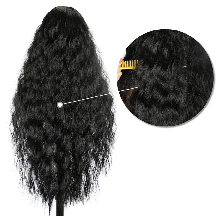 - Contiene: Una (1) Peluca de Encaje Frontal Ondulada 80cm Kanekalon Negro