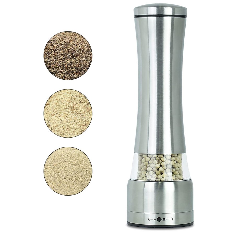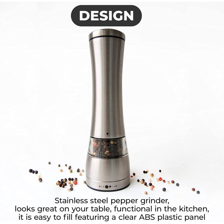 Pimentero Molino Eléctrico Acero Inoxidable Salero Grosor Ajustable Anti Gravedad