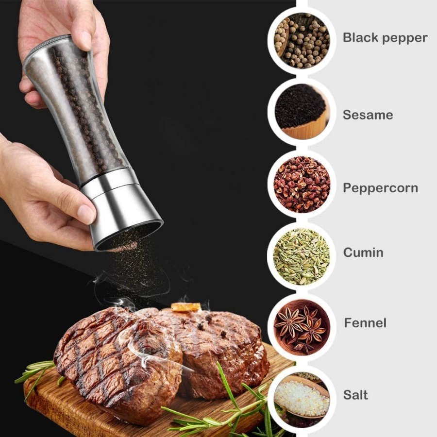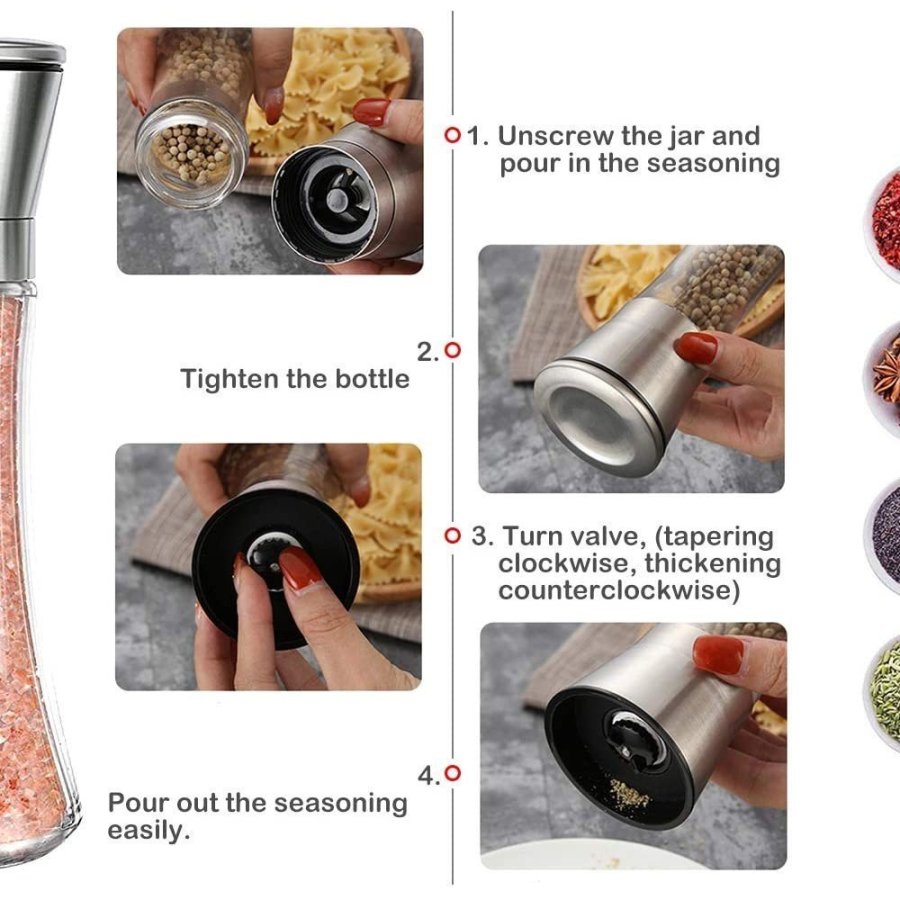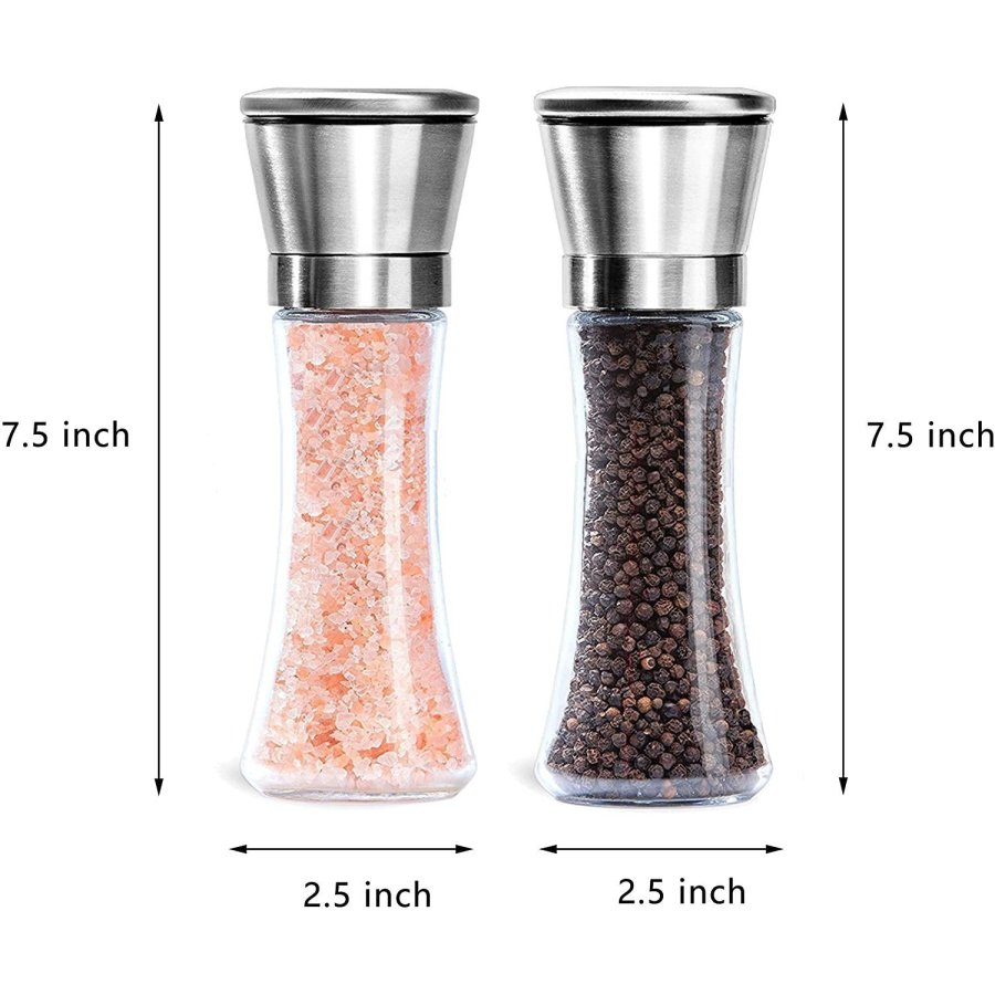 - MÁS ALTA CALIDAD: Construidos con acero inoxidable y vidrio de la más alta calidad, estos molinillos de sal y pimienta están hechos para durar.
