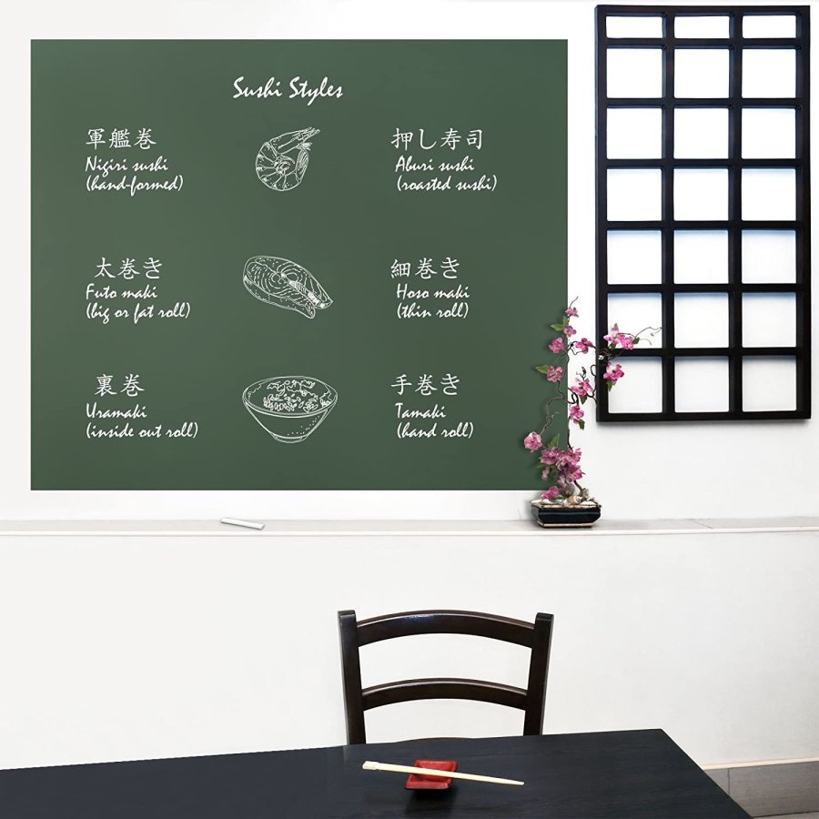 • Adhesivo tipo tablero de alta calidad fácil instalación y limpieza, que simula un tablero de tizas tradicional.