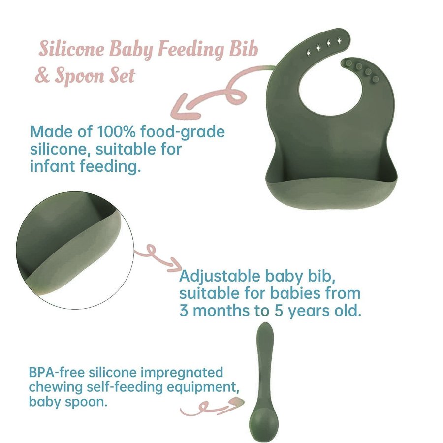 • Survive the "chuck-it-on-the-floor" stage with our silicone feeding sets. Each set includes an adjustable, easy-clean bib with pocket, an unbreakable, suction bowl and plate and child-friendly, easy grip spoon. All items are made from food-safe, high-grade silicone that can go in the dishwasher and microwave.