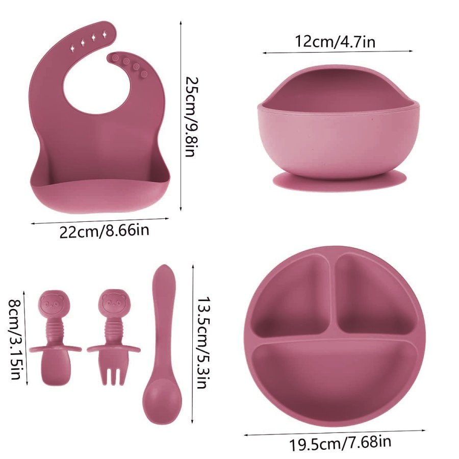 • Survive the "chuck-it-on-the-floor" stage with our silicone feeding sets. Each set includes an adjustable, easy-clean bib with pocket, an unbreakable, suction bowl and plate and child-friendly, easy grip spoon. All items are made from food-safe, high-grade silicone that can go in the dishwasher and microwave.