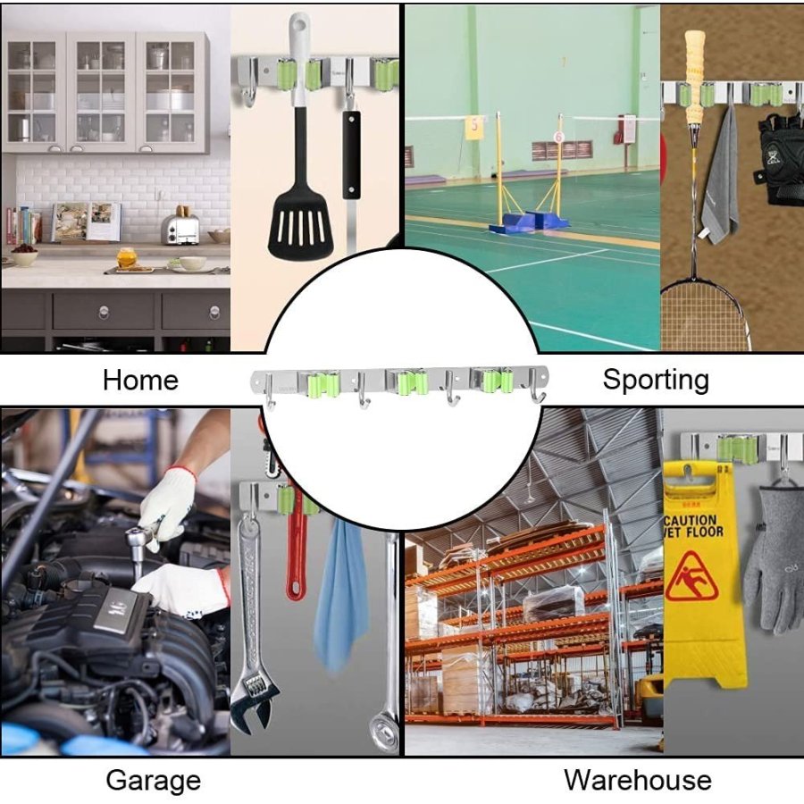 • El soporte de escoba resistente para montaje en pared puede funcionar en interiores y exteriores! ¡Ordena tu escoba, trapeador, rastrillos, herramientas y más! Perfecto para la cocina, armario, garaje, oficina, ideal para uso comercial e incluso funciona al aire libre o en el cobertizo para sus herramientas de jardín.
