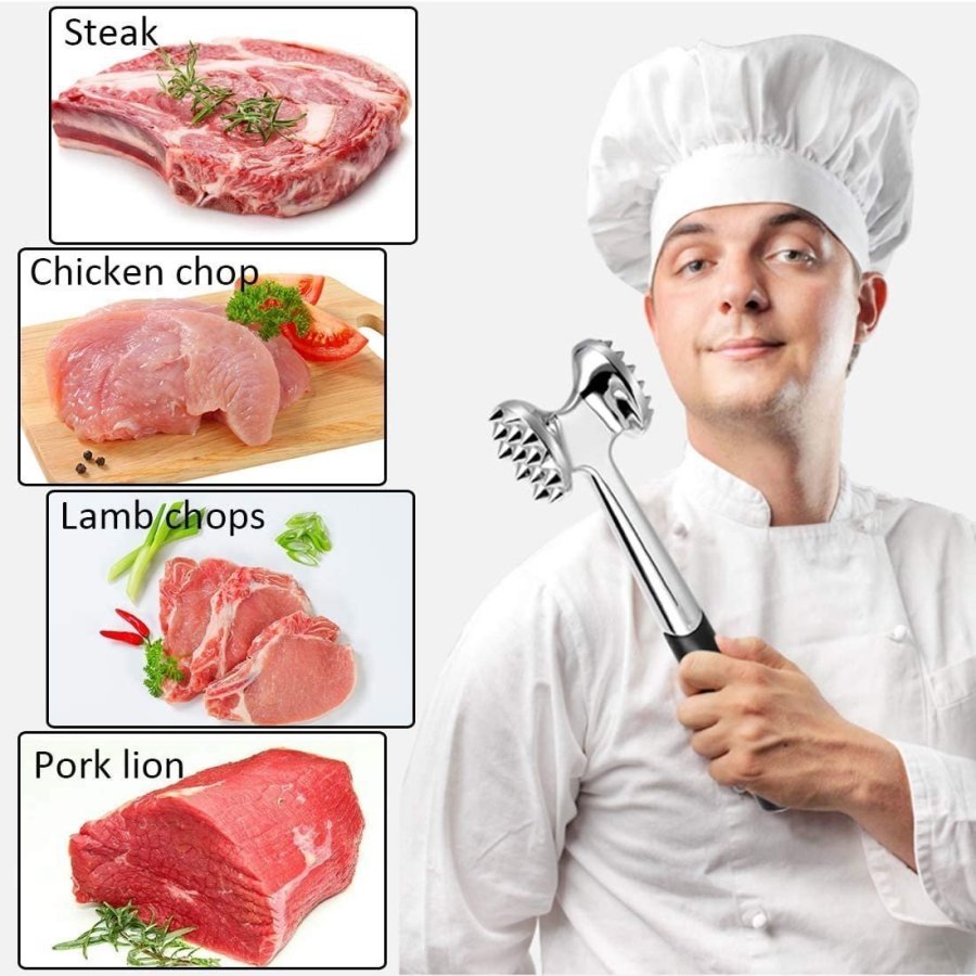 • MULTIFUNCIÓN: Idea para mejorar el sabor de la barbacoa, bistec, costillas de cerdo, cerdo, pollo, pavo, cordero, ganso, pato, etc. También puede romper cáscaras de nuez, cáscaras de cangrejo, triturar ajo e incluso romper bebidas heladas y pan rallado, nueces y dulces.