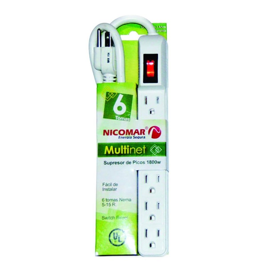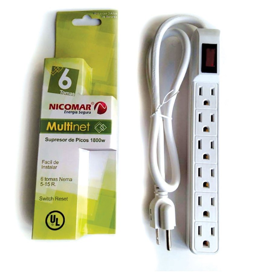 Supresor de Picos MultiNet de 6 Salidas, Regleta Multiplica tus Opciones de Conexión