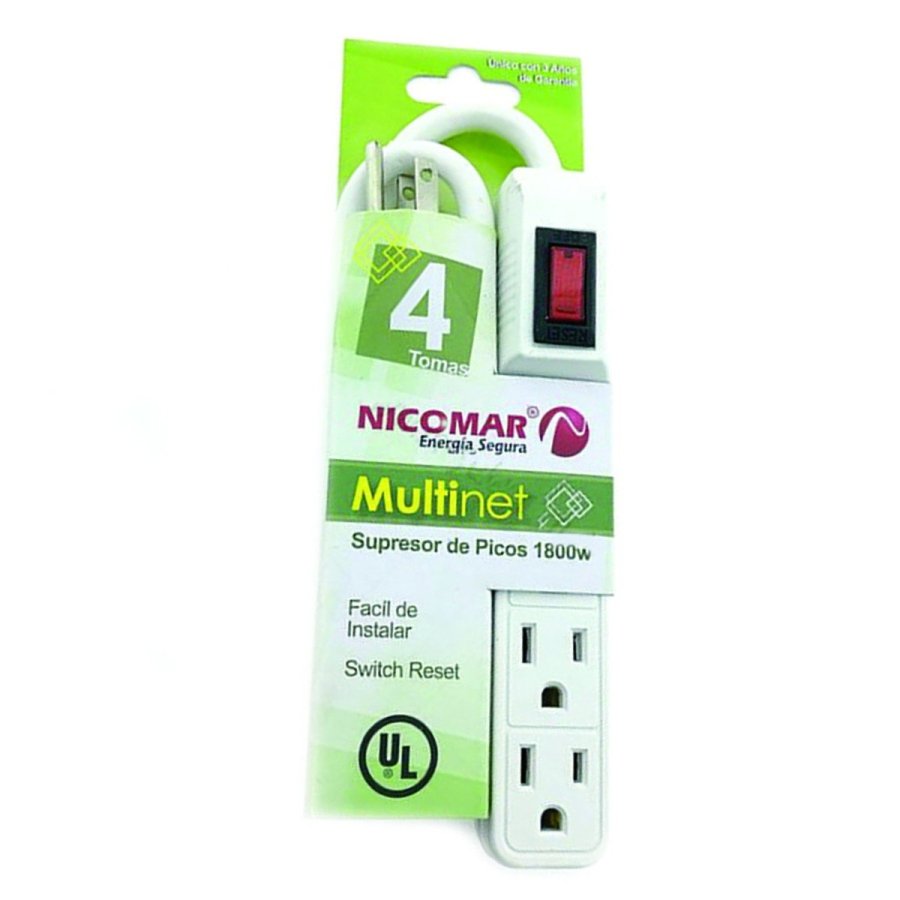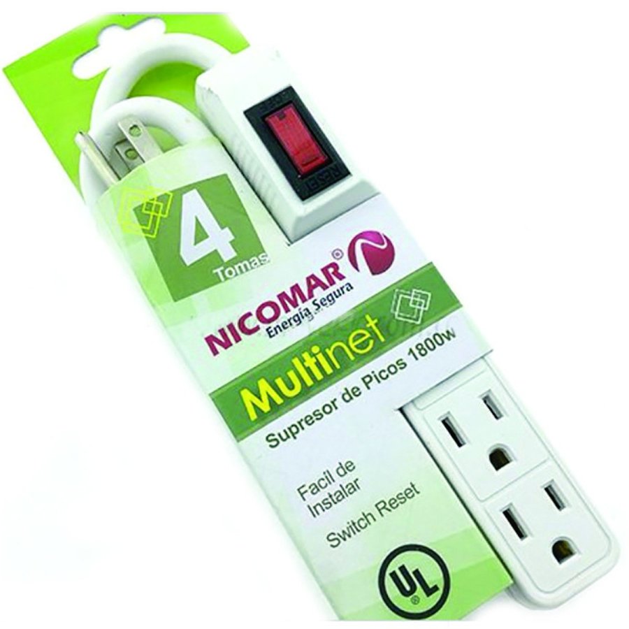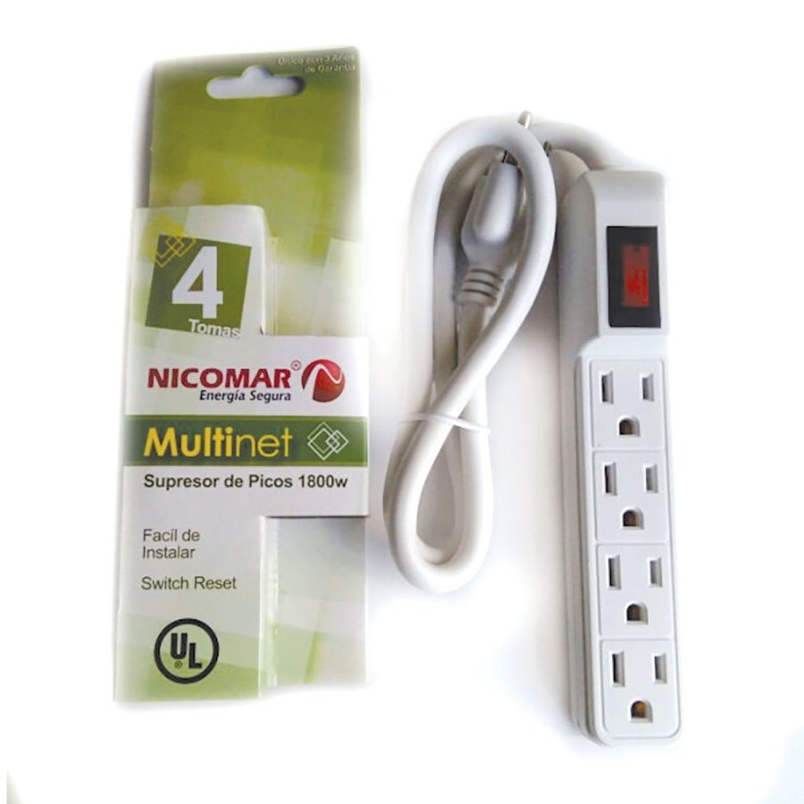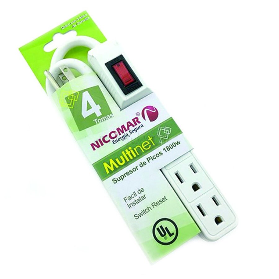 Un (1) Multi Toma Supresor de picos con 4 tomas, multiplique sus opciones de conexión