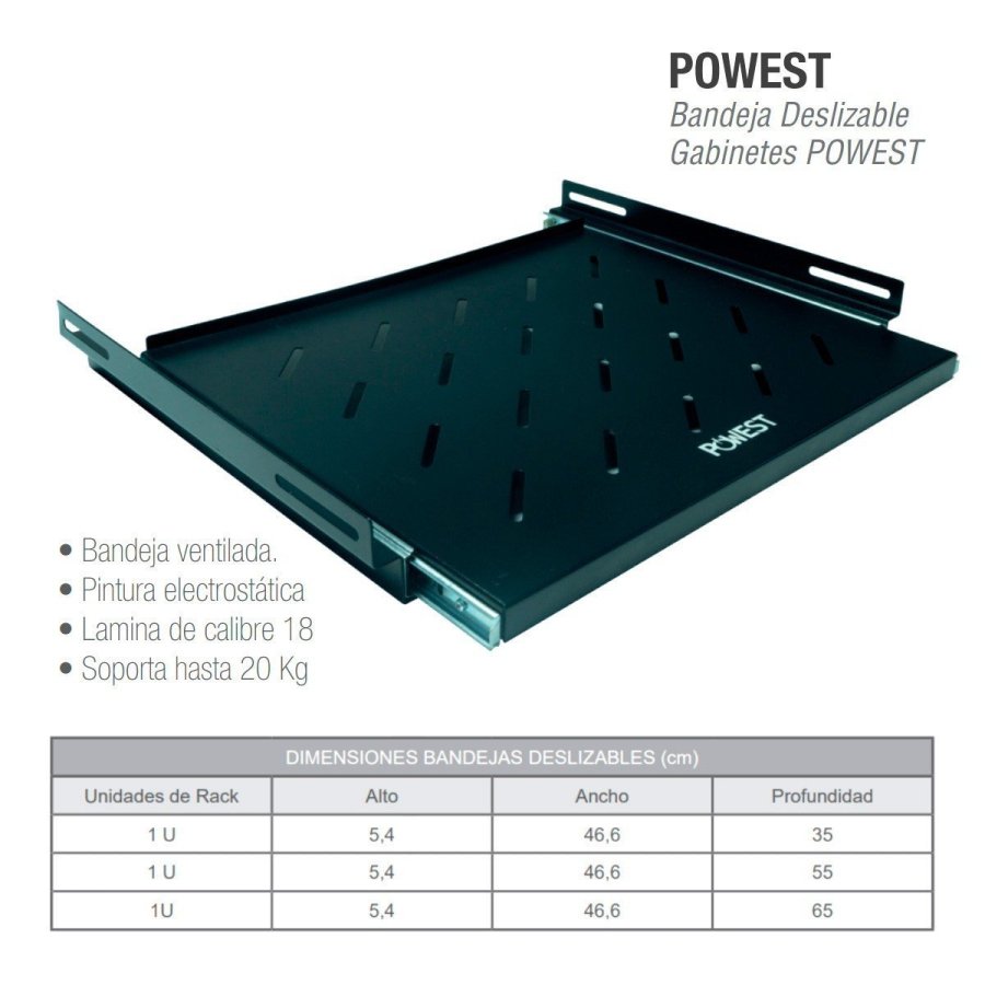 Bandeja Deslizable Ventilada 1 U X 65 CM para gabinetes Powest