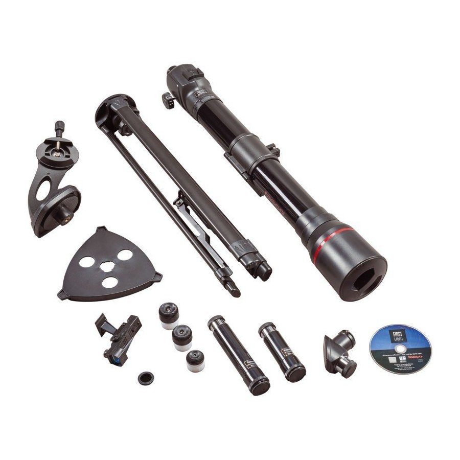 - Accesorios: Tasco SkyWatch CD-ROM, lente Barlow 3x, mapa lunar, filtro lunar y prisma erector
