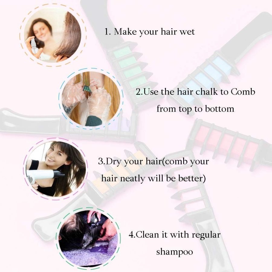 - Seguro: el peine de tiza para tinte temporal para el cabello está hecho de un material ecológico, que no es una carga para el cuerpo y se puede lavar con champú normal.