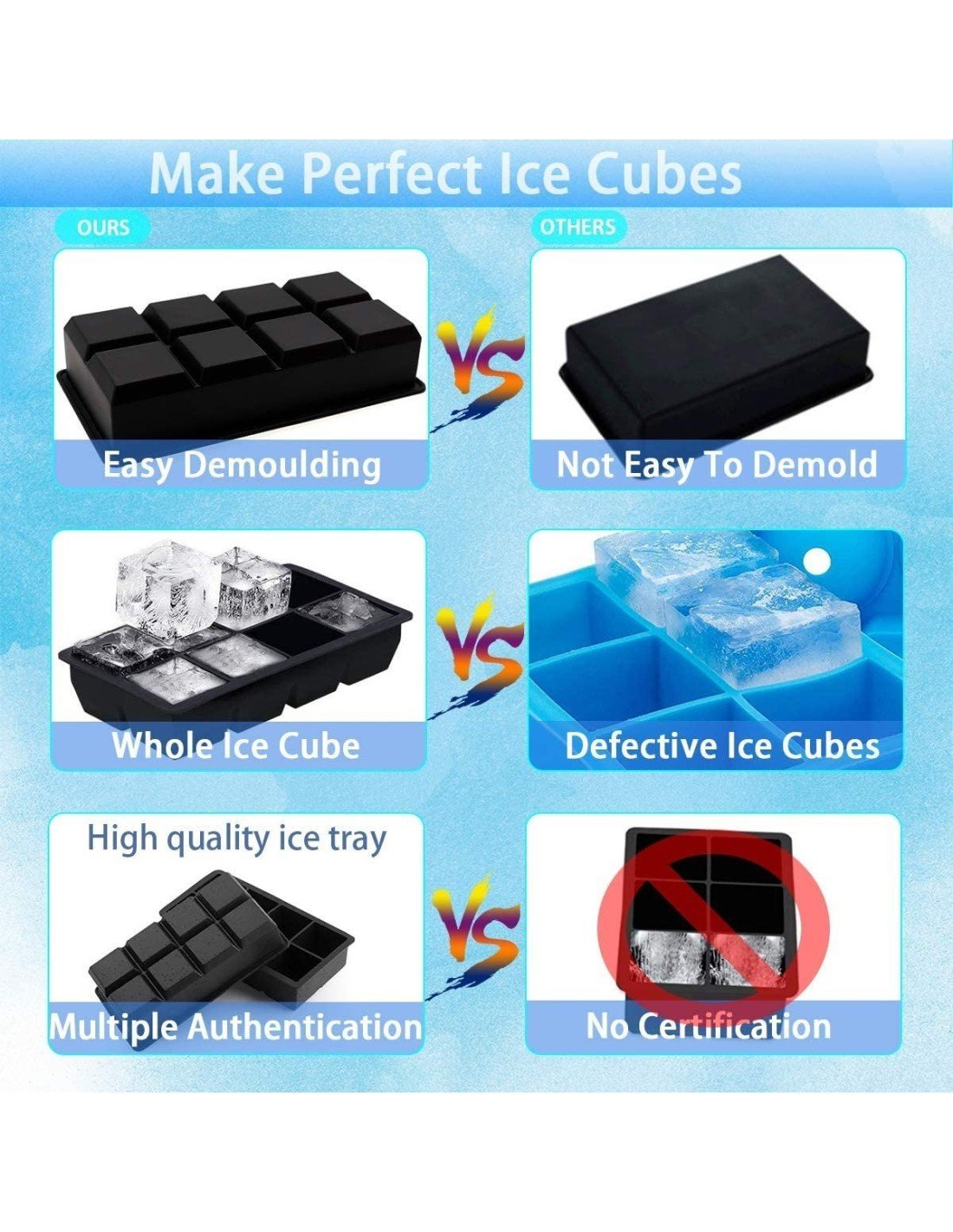 - Bandejas cuadradas para cubitos de hielo: nuestros moldes cuadrados jumbo crean 8 cubitos de hielo gigantes de casi 2.0 in cada uno. Más que una novedad, se derriten / diluyen más lentamente, lo que los hace ideales para whisky escocés, bourbon o mezclado