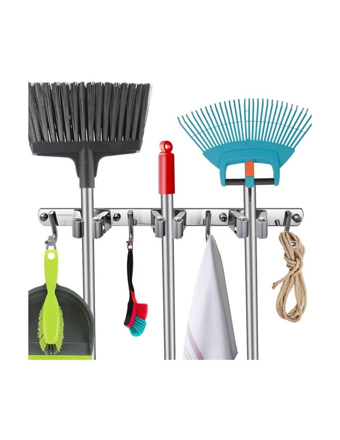 - Material de alta calidad: Diseño de 3 estantes y 4 ganchos, organice sus molestas herramientas de limpieza en un espacio pequeño.El soporte para fregona y escoba está hecho de acero inoxidable 304, resistente y duradero, ranuras de doble agarre de goma con resorte, ya sean mopas húmedas, sucias rastrillos o bates de béisbol, garantizamos que nada se resbala (soporta 30 libras)